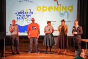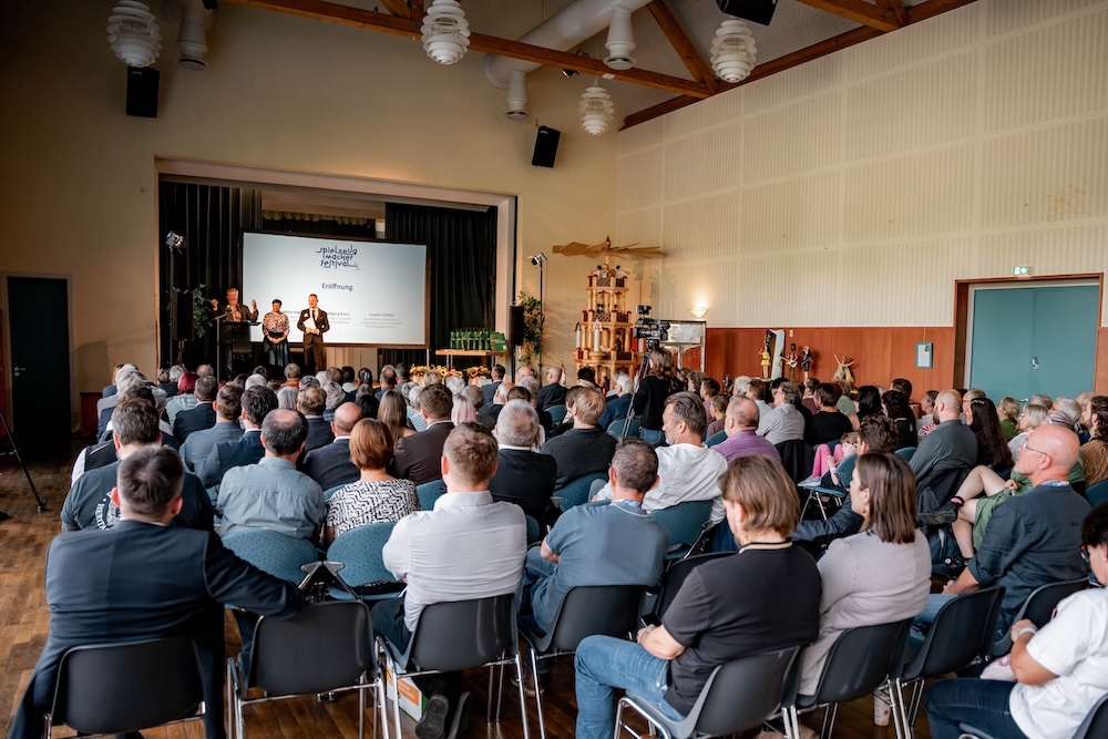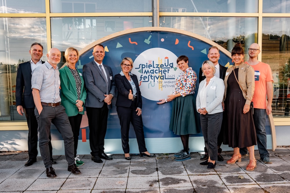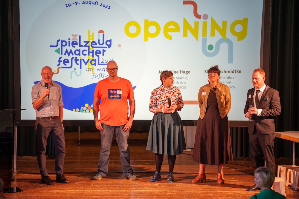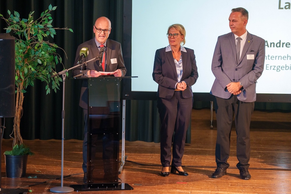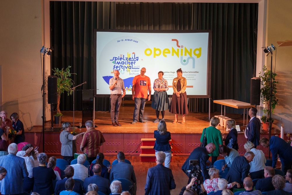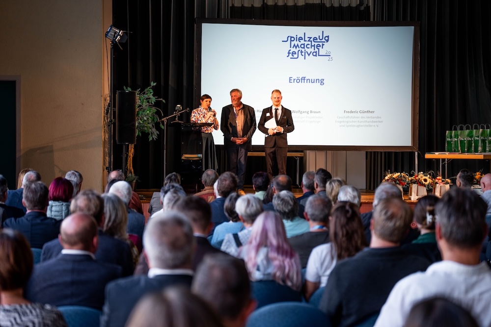 Die Preisverleihung fand in einem außergewöhnlichen Rahmen statt: Denn noch am selben Abend wurde das Europäische Spielzeugmacherfestival eröffnet, das rund 3.700 Besucher gemeinsam feierten. Ein Signal an Europa, um „die unverwechselbare DNA der erzgebirgischen Kunsthandwerker, das Miteinander und die Freude in die Welt und Zukunft zu tragen“, betonte Josephine Hage (im rechten Bild: Mitte), Kuratorin Makers, Business & Arts der Kulturhauptstadt Europas Chemnitz 2025, in ihrer Eröffnungsrede.